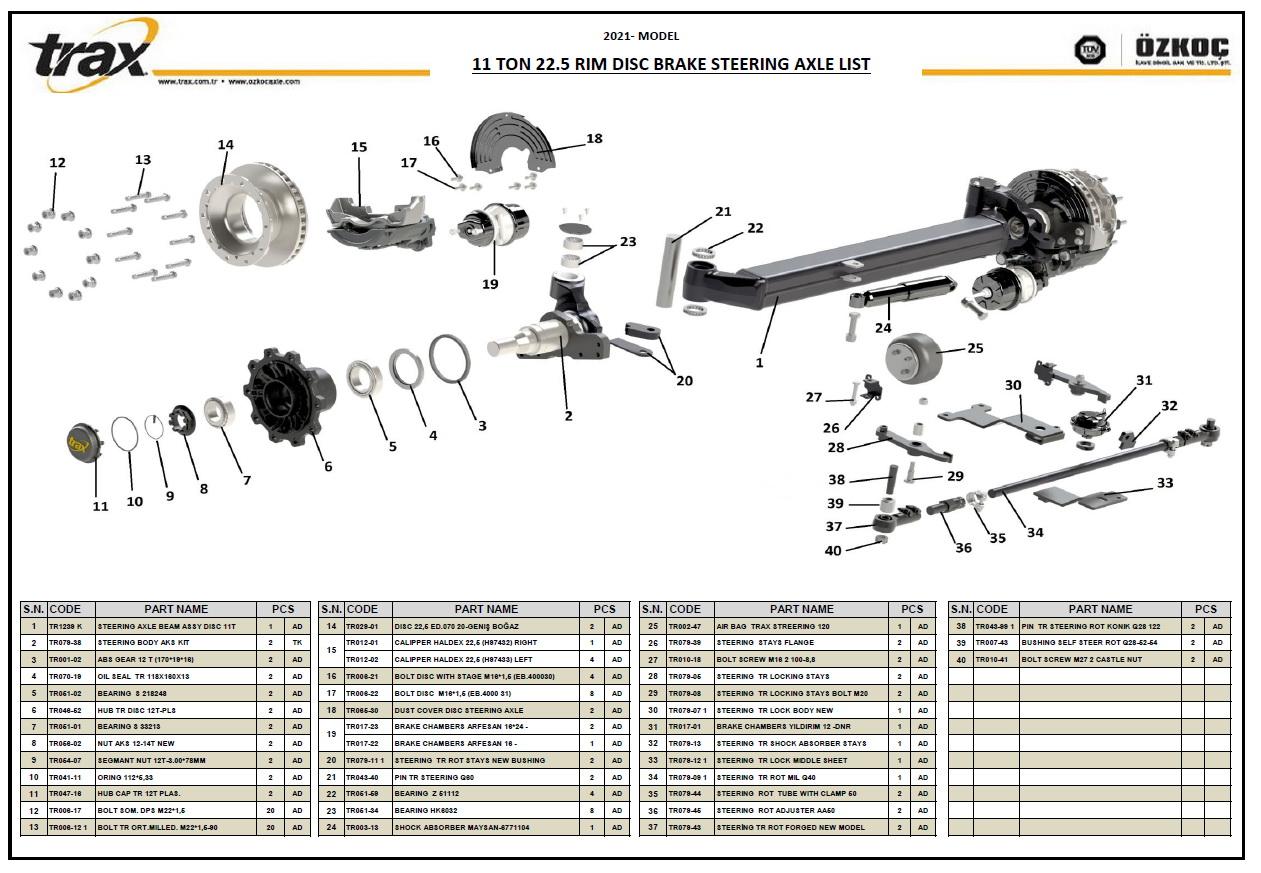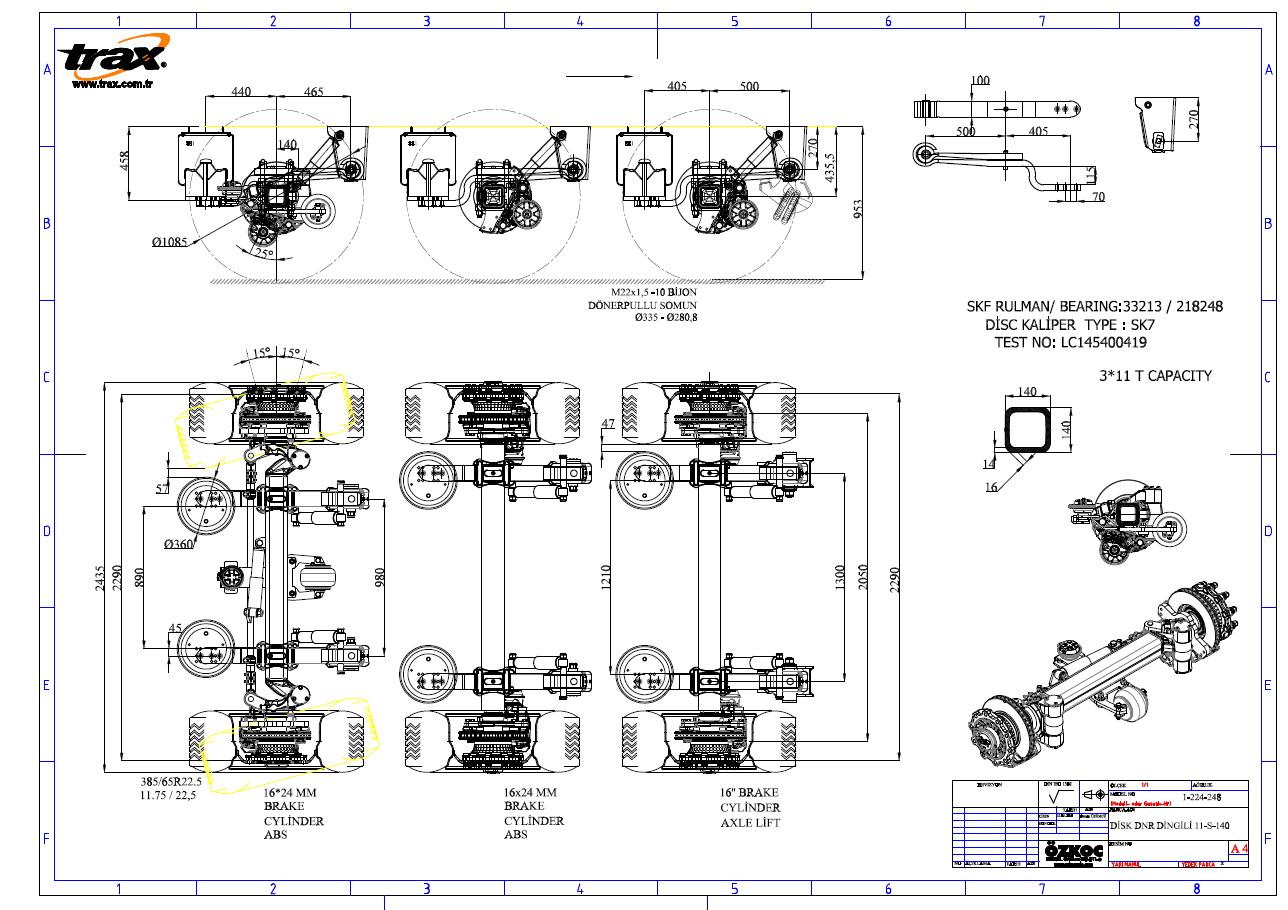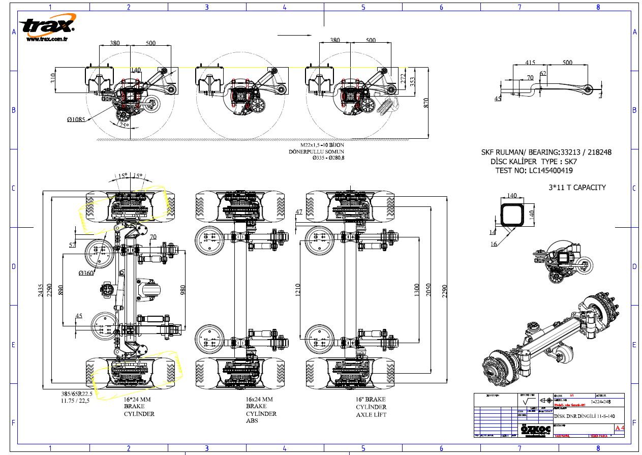 | TR | 11000 | 2530 | 1850 | 140*140 | 33213/218248 | 430/45 | 335/281 | 10*M22x1,5 | 650 | ÇİFT | 20° |