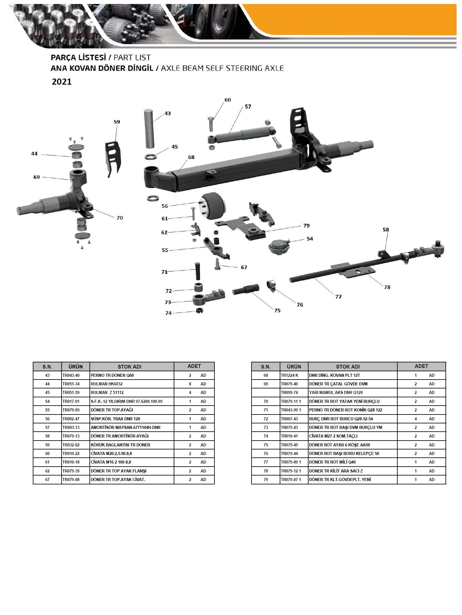 | KOD | CAPACITY | LL | JT | AA | BEARING | FREN | B/D | BOLT | MM | TYRE | X max. | SPARE PART | TEST REPORT | MAINTENANCE MANUEL | DRAWINGS |