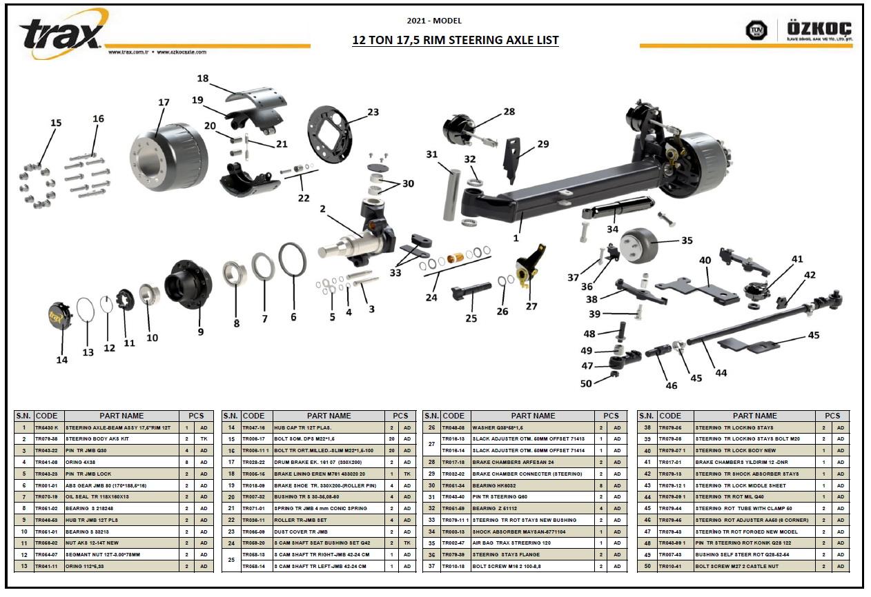 | KOD | KAPASİTE | LL | JT | CC | TS | AA | RULMANLAR | FREN | B/D | BİJON | MM | LASTİK | X max. | YEDEK PARÇA | TEST BELGE | BAKIM KLAVUZU | SET CİZİM |